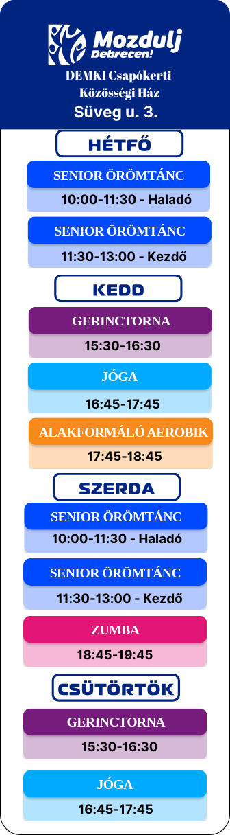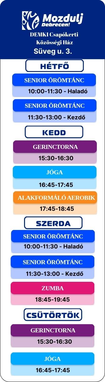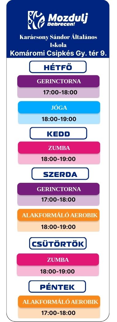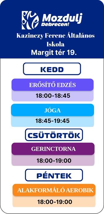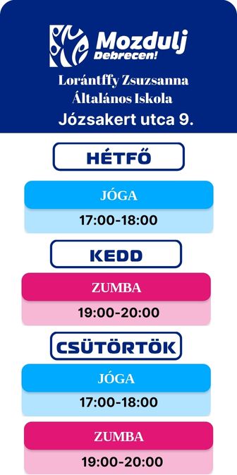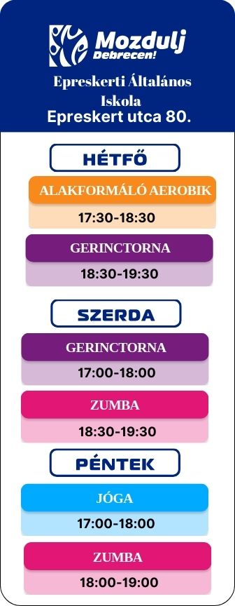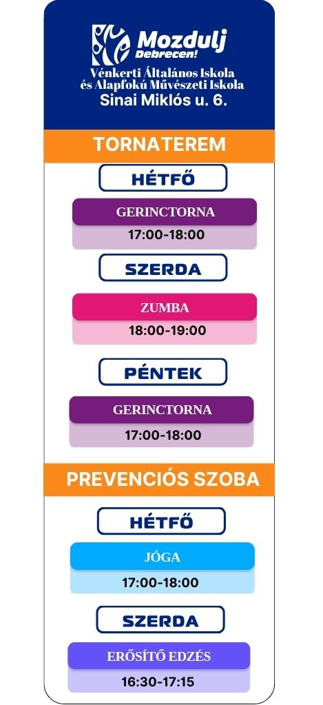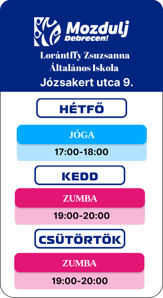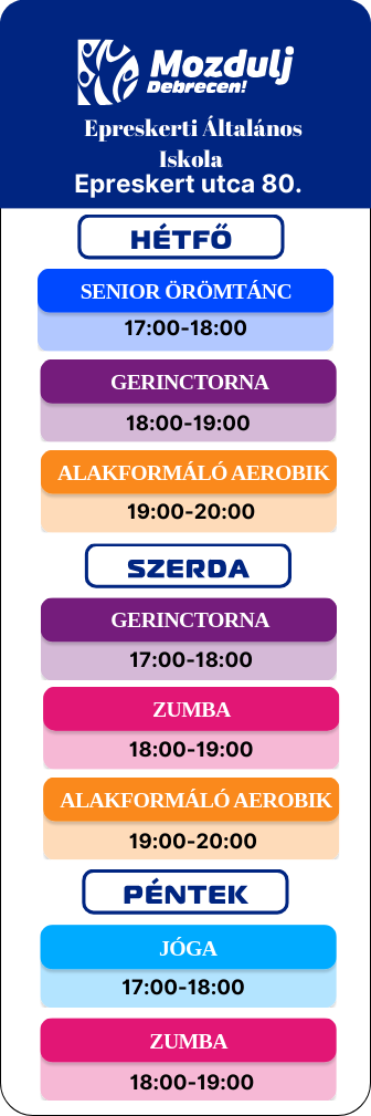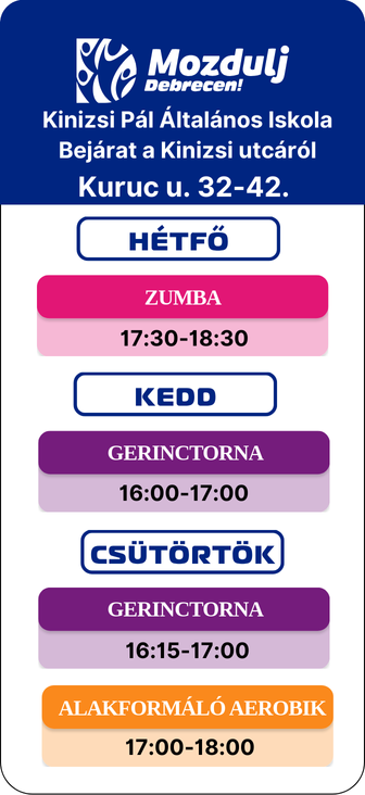 Ezzel a névvel szeretnénk elindítani a Mozdulj, Debrecen! Iskolaprogramon belül az első osztályosok mozgásra nevelését és lelki fejlődésük segítését. Az óvodai évek után beülni az iskolapadba nagy feladat, komoly erőpróba a gyermekek számára. Az addigi mindennapi szabad mozgás után napi több órát kell fegyelmezetten végigülni, ami újfajta terhelést jelent a kicsik teste és lelke számára is.