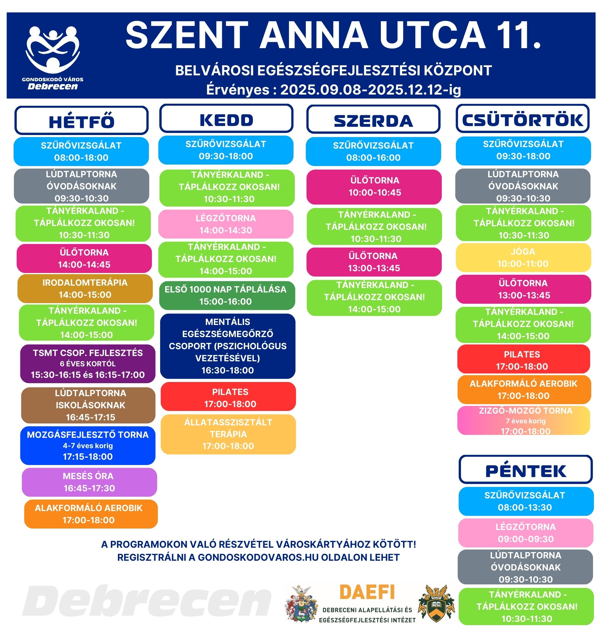 A Debreceni Egyetem Klinikai Központ Debreceni Alapellátási és Egészségfejlesztési Intézete (DAEFI) végzi városunk nevelési-oktatási intézményeiben a kötelező iskola-egészségügyi feladatokat.